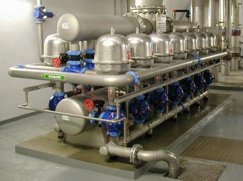 精密過濾器一般置于機(jī)械過濾器之后,要求進(jìn)口水的濁度在2mg/L以下,其出水濁度可達(dá)0.3~0.1mg/L,而且不隨原水濁度波動(dòng)而波動(dòng)。按懸浮雜質(zhì)的粒徑計(jì),選用不同的過濾材料去除水中5、10、20、50、100μm以上的顆粒。