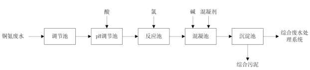 圖3 銅氨廢水折點(diǎn)加氯法的預(yù)處理工藝流程