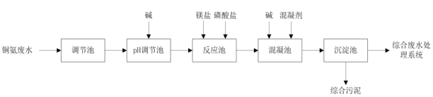 圖4 銅氨廢水磷酸銨鎂脫氨氮法的預(yù)處理工藝流程