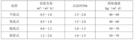 5)沉淀池的設(shè)計(jì)參數(shù)應(yīng)根據(jù)廢水處理試驗(yàn)數(shù)據(jù)或參照類似廢水處理的沉淀池運(yùn)行數(shù)據(jù)確定;當(dāng)沒有試驗(yàn)條件和缺乏有關(guān)資料時(shí),設(shè)計(jì)參數(shù)可參考表 2確定;