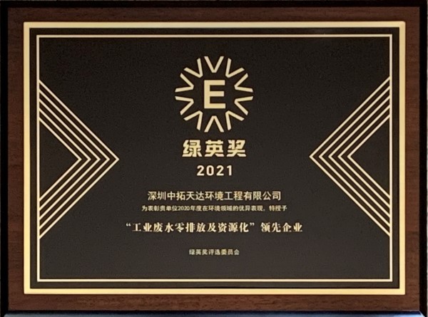 大會舉辦期間,公布了2021年“綠英獎”獲獎名單,深圳中拓環(huán)境工程有限公司很榮幸地被授予“工業(yè)廢水零排放及資源化 領先企業(yè)”獎項。